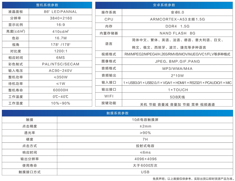 技术参数: